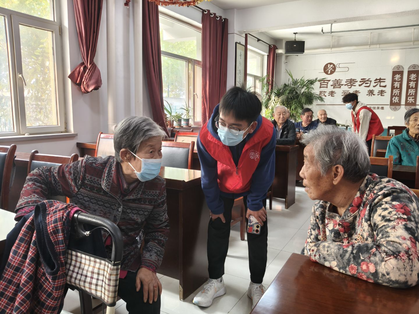 秋阳和煦,志愿步履不停。志愿者们带着精心准备的节目来到敬老院,为老人们的生活增添了亮色,且尽显青年一代的蓬勃朝气。他们与老人们围坐谈心,耐心倾听往昔峥嵘,于交流互动里,搭建起心灵的桥梁。志愿者们以实际行动给予老人精神慰藉,让“奉献、友爱、互助、进步”的志愿精神在温情互动中熠熠生辉。