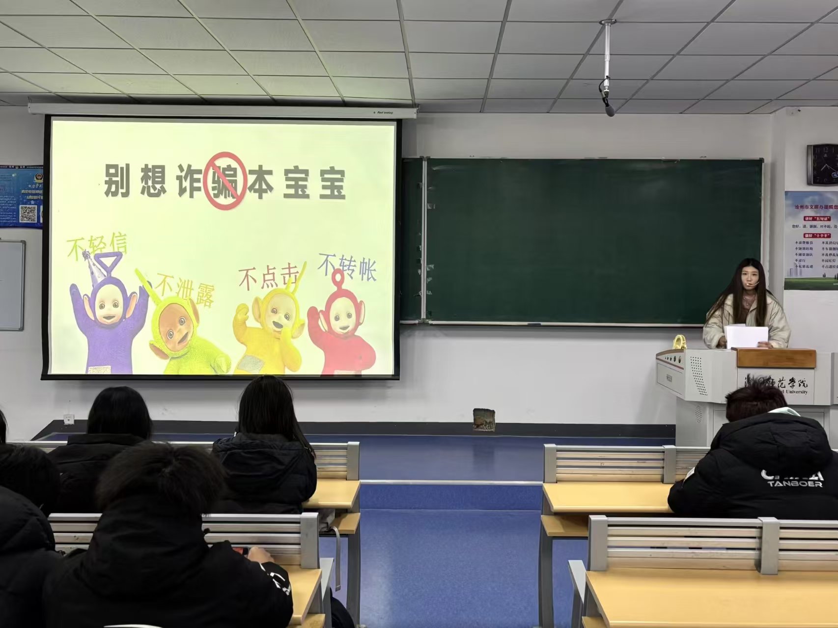 班会开展过程中,各年级辅导员老师们结合电信网络诈骗的新趋势、新特点,通过播放反诈宣传视频、讲解典型案例等方式,梳理刷单返利、网络贷款、冒充客服、冒充老师或亲友等高发诈骗类型。同时,针对学生群体易受骗的环节,老师们拆解诈骗分子的话术陷阱,着重提醒学生不随意点击陌生链接、不随意透露个人信息、不向陌生账户转账,遇可疑情况及时联系老师、家长或拨打报警电话。