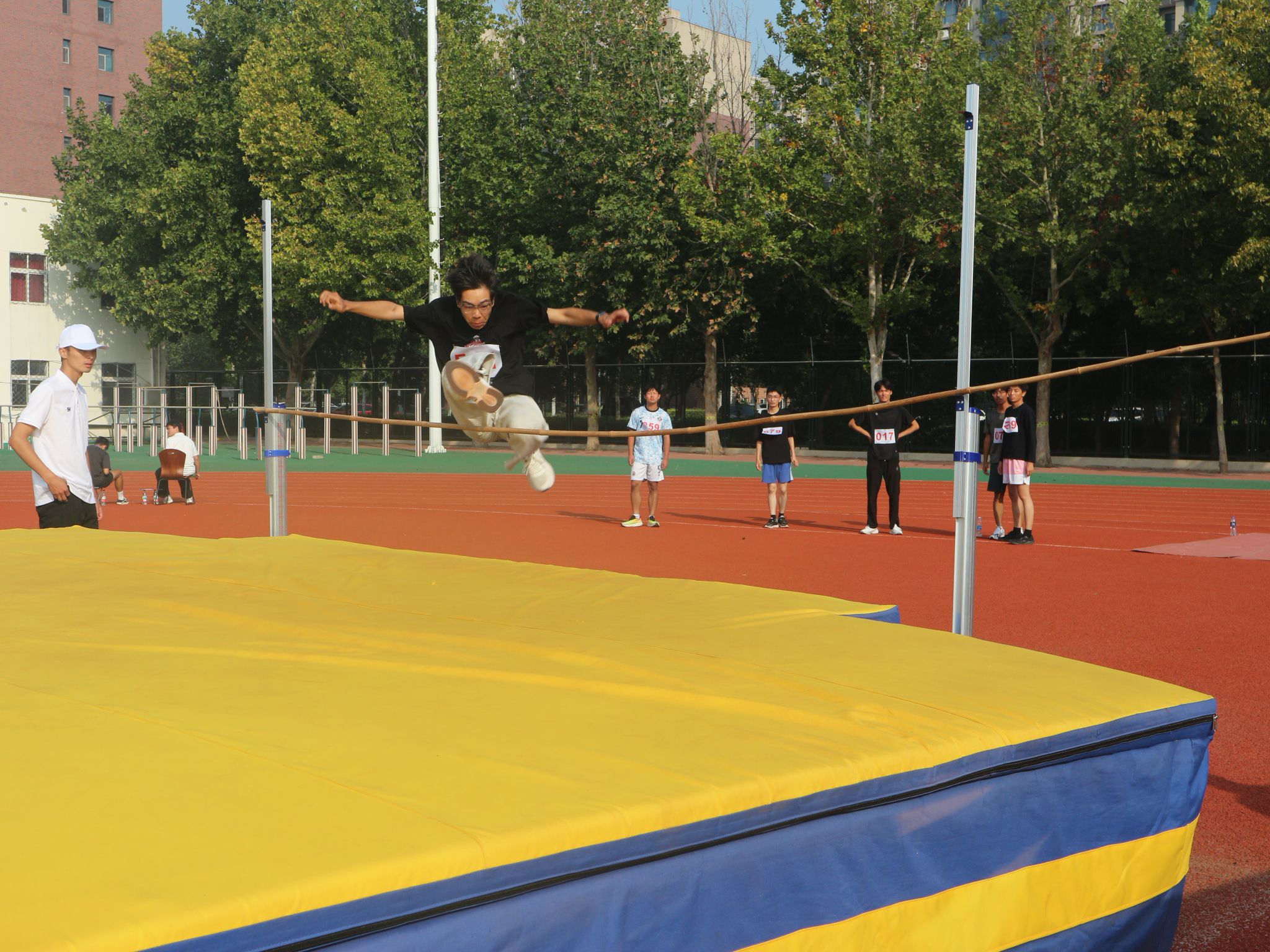 跳高赛道速写:助跑、起跳、腾空、过杆!运动员如灵巧的飞燕,在横杆之上划出一道优美的弧度。身体与横杆擦过的瞬间,是力量与技巧的完美结合。